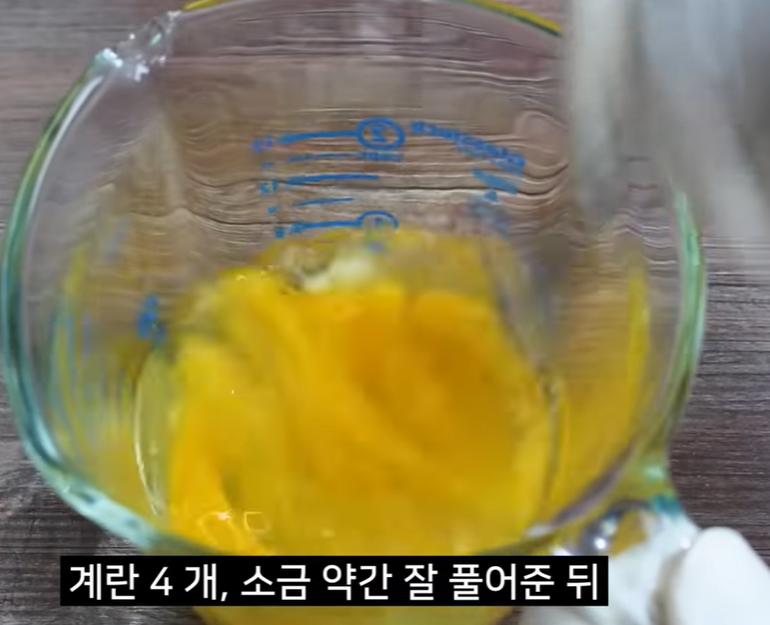 계란 4개에 소금 4꼬집을 넣고 잘 풀어줍니다.
