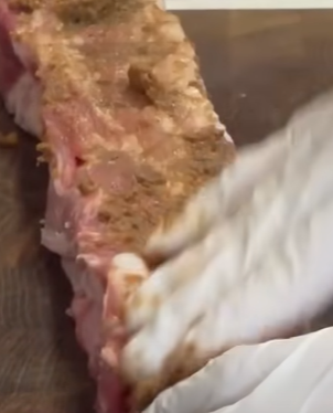 1. 키친타월을 이용해 통삼겹살의 핏물을 제거해줍니다.
