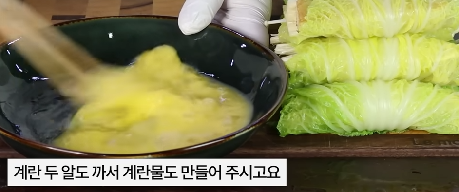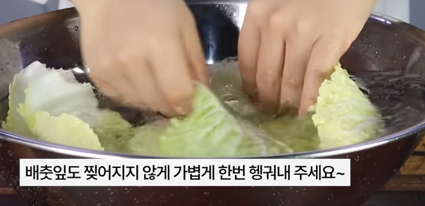 배춧잎은 딱 3분간 데쳐주세요.