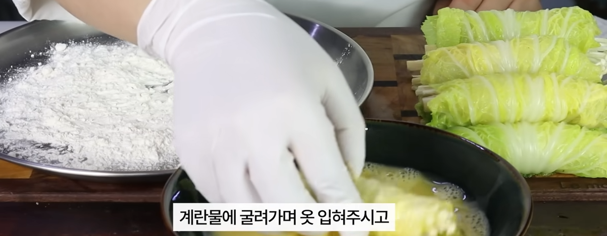 계란물에 옷 입혀줍니다.