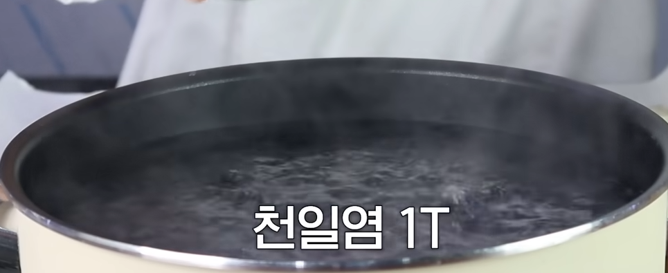 물을 끓이고 천일염 1T를 넣습니다.