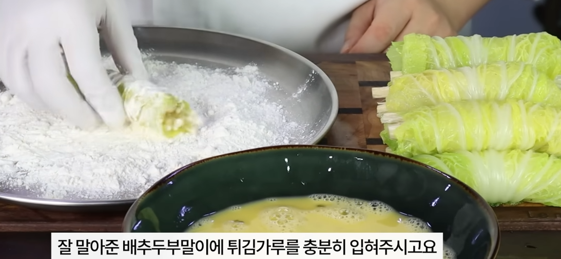먼저 튀김가루를 충분히 입혀주고