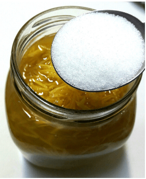 ③꿀을 붓고 그 위에 설탕 4T를 넣어 생강을 덮어줍니다.