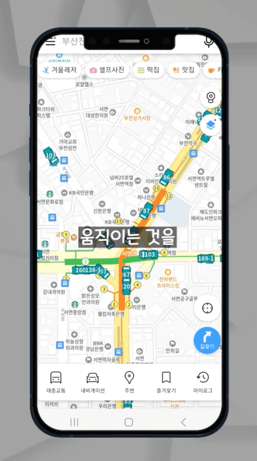 이러한 기능으로 인해 ‘몇분 도착’으로 설명해주는 네이버 맵보다는 위치를 나타내주는것이 훨신 도움이 될거 같습니다.