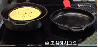 중상불로 미리 예열한 냄비나 후라이팬에 접시를 놓고 그 위에 빵틀을 올려줍니다.그리고 반드시 뚜껑을 덮고 20분을 구워줍니다.