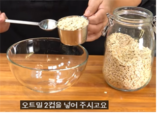 오트밀은 다른 맛이 가미되지 않은 기본 오트밀로 두컵을 넣어주세요.