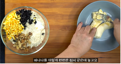 으깬 바나나까지 넣으면 모든 준비 완성입니다.