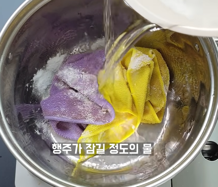 2단계 : 행주에 물을 부어 끓이기