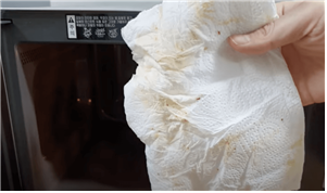 전자렌지 하단에 있는 받침대를 제거하고 키친 타올을 이용해 전자렌지를 닦아줍니다.