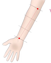 팔꿈치 안쪽 주름과 손목 안쪽 주름의 1/3 지점에 있는 극상혈을 눌러주면 심장 두근거림을 완화하고 심장의 기능을 향상 시킬 수 있습니다.