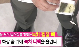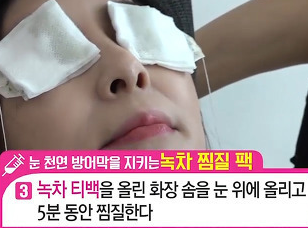 4. 찜질 후 녹찻물이 촉촉이 스며든 화장 솜으로 눈의 기름샘을 닦아 노폐물을 제거해주면 됩니다.