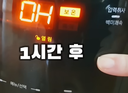 4. 전기 밥솥을 이용해 보온을 선택하고 1시간 타이머를 맞춰줍니다.