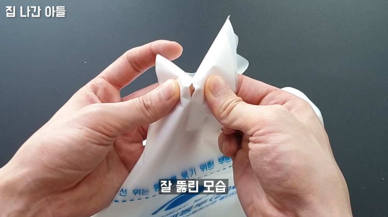 쓰레기봉투 끝을 가위로 잘라야 한다구요