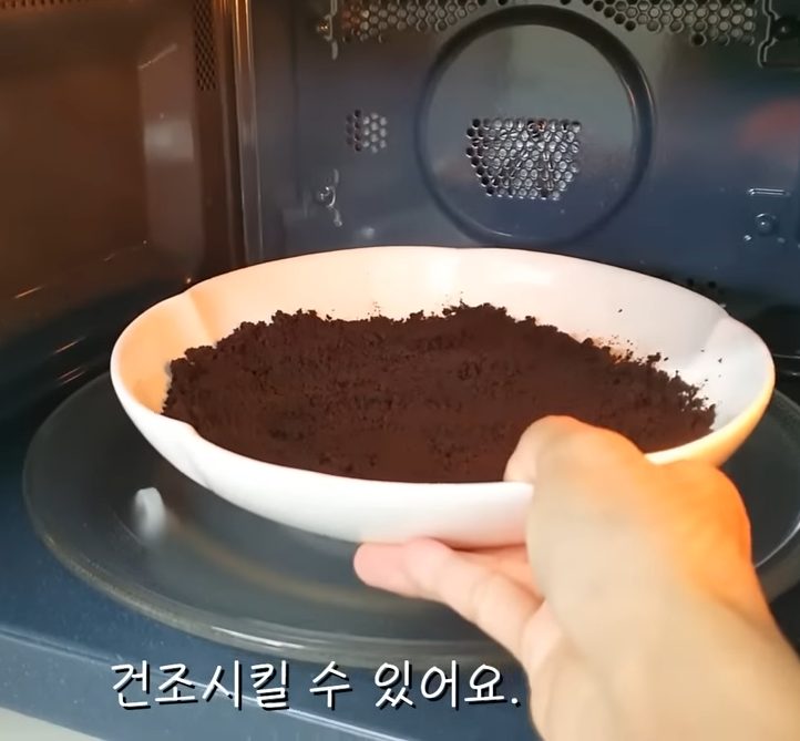 제일 먼저 커피가루를 자연건조 혹은 전자레인지로 물기를 날려줍니다.