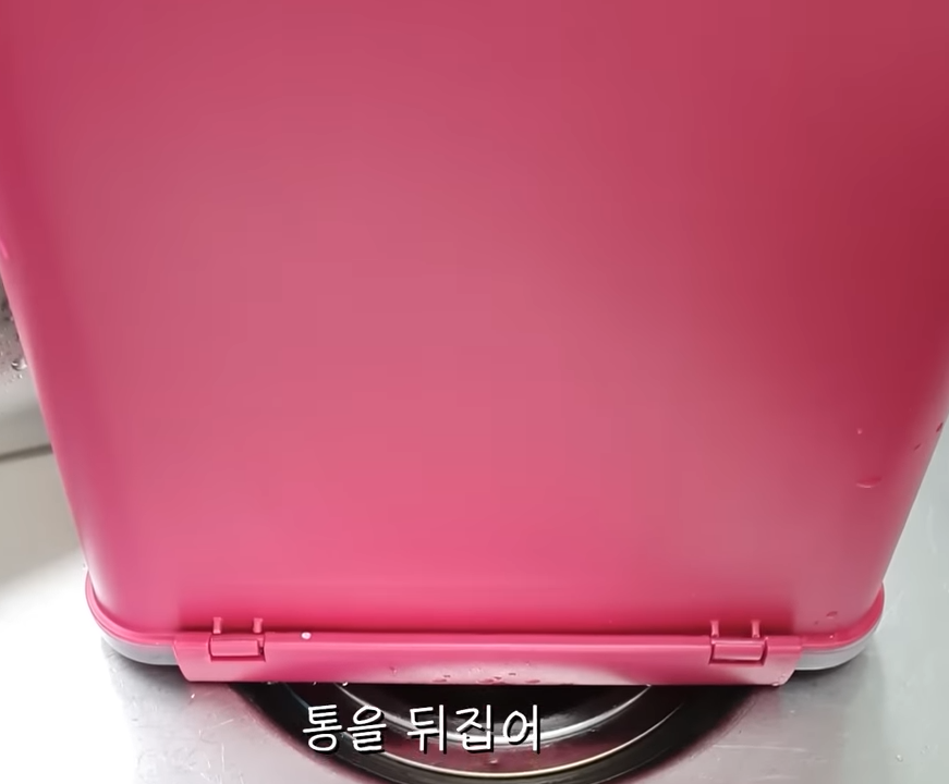 안에 있는 설탕물을 버리지 말고 다른 통에 또 반복 사용할 수 있습니다. 통을 깨끗하게 헹구면 김치냄새가 사라져있습니다.