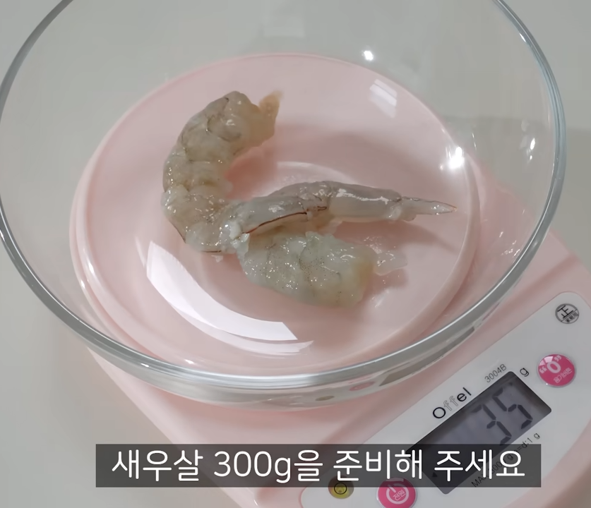 새우는 껍질과 내장을 제거한 새우살로 300g을 준비합니다.