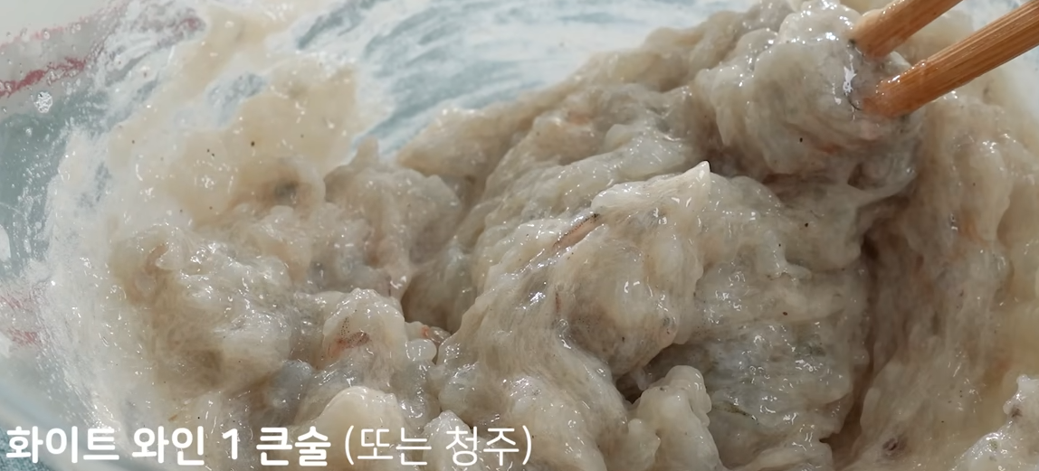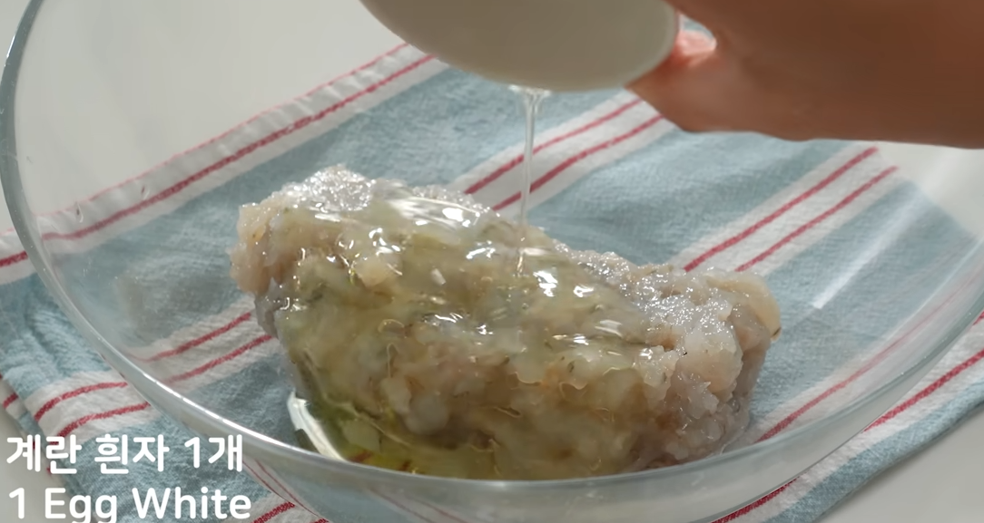 다진 새우살에 계란 흰자 한개를 넣어줍니다.
