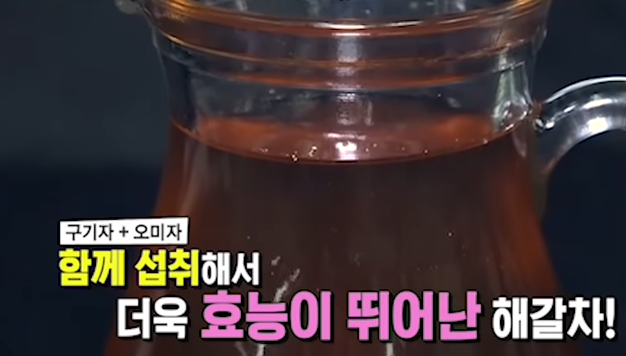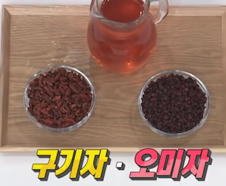 마사지와 함께 추천하는 것은 구기자와 오미자 차입니다.