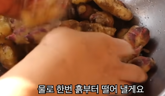 생강을 물로 흙을 털어내며 씻어줍니다.