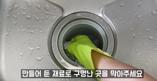 배수구의 뚜껑을 모두 제거한 후, 만들어 둔 재료로 구멍을 막아주세요.