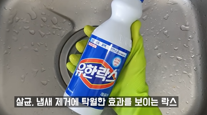 그 항균 및 냄새 제거 효과가 뛰어난 락스를 사용합니다.
