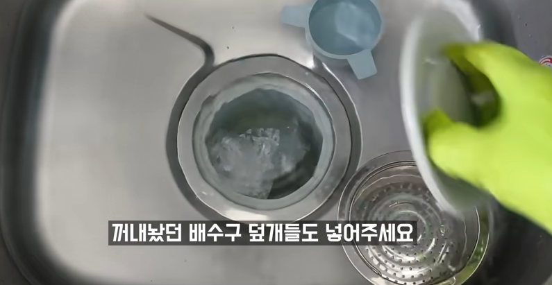 배수구에 물을 채운 후 꺼내놨던 배수구 덮개들도 다시 넣어주세요.