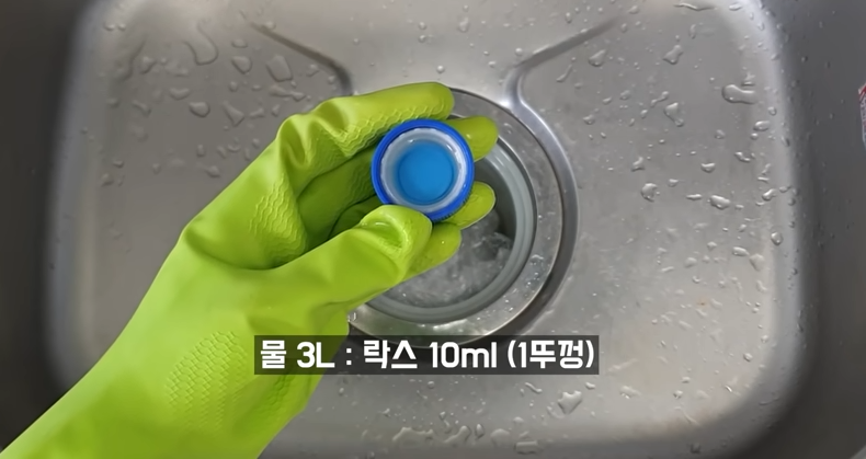 싱크대에 찬물을 채워 염소가스 발생을 막아줍니다.
