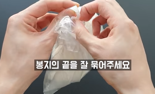 봉투 끝을 잘 묶어서 휴지가 떨어지지 않도록 해야 합니다.