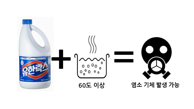락스를 60도 이상으로 가열하면 염소 기체가 발생할 수 있습니다(사용 환경에 따라 다름).