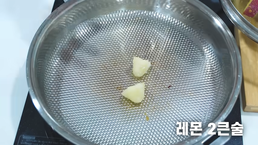 재료 – 고구마 550g 식용유 1/2컵 설탕 3큰술 레몬 2큰술