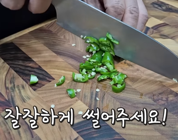 청양고추 1개를 자잘하게 썰어서 준비합니다.