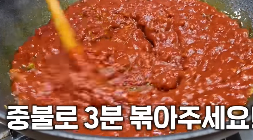 고추장 10스푼(350g)을 넣고 중불에서 3분간 볶아줍니다.