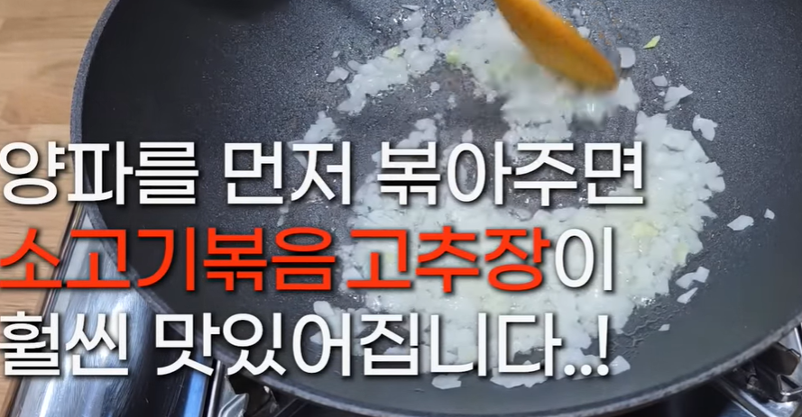 양파를 먼저 볶아주게 되면 고추장의 짠맛을 완화시켜 줍니다.