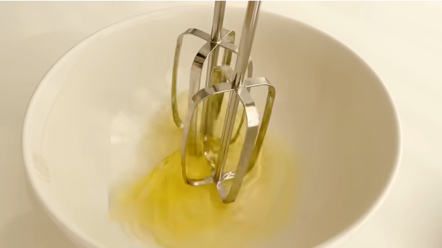 분리해둔 흰자는 거품기를 이용해 머랭을 만들어주세요.