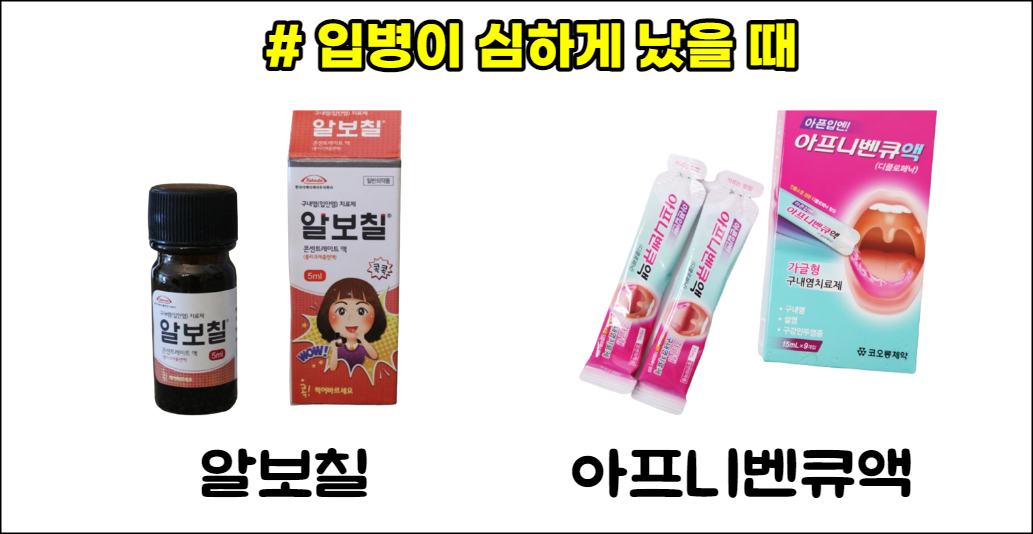 알보칠 - 입병이 심하게 났을 때 발라주면 굉장히 효과가 좋지만 그만큼 고통이 따르는 구내염 치료에 직빵인 약입니다.