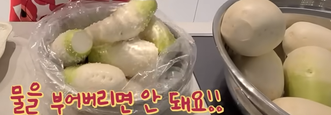그래서 골고루 안 절여지기 때문에 물은 절대 부으면 안됩니다.