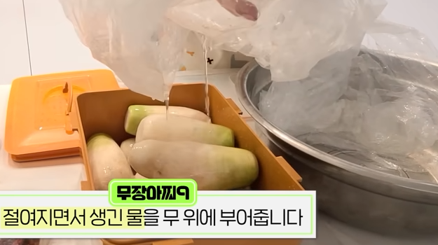 무가 잘 절여지려면 수분이 약간 필요하거든요.