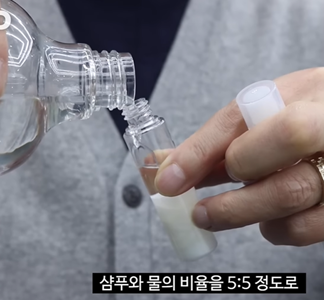 샴푸 : 물 = 5 : 5 의 비율로 섞어줍니다.