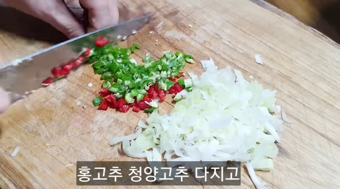 다진파 3큰술, 다진고추(홍,청) 1큰술, 다진마늘 1큰술을 만들어 둡니다.