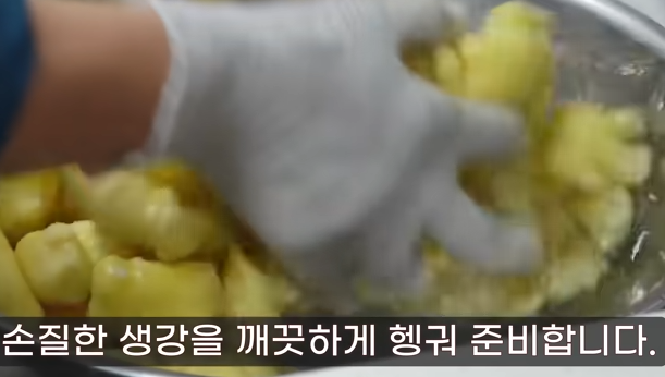 손질한 생강을 깨끗하게 헹궈 준비합니다.