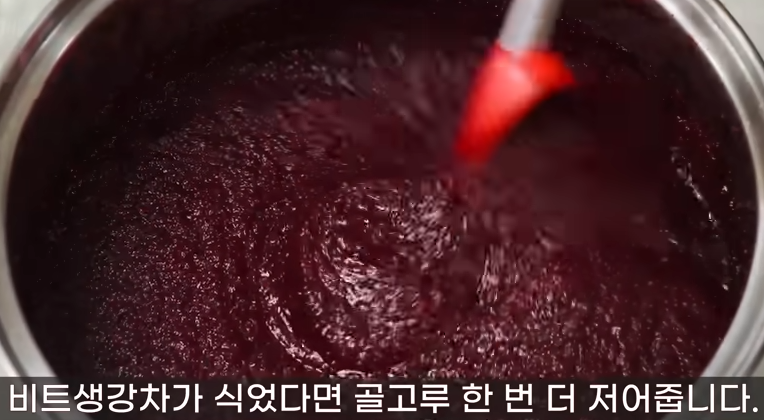 비트생강차가 식었다면 골고루 한 번 더 저어줍니다.