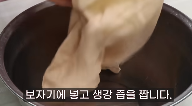 생강즙을 넣을 땐 밑에 가라앉은 하얀 전분을 절대 넣지 않아요.