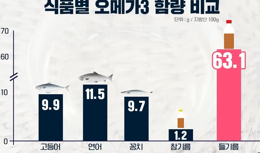 들기름을 사용하는 이유는 오메가3 지방산이 풍부하기 때문입니다.