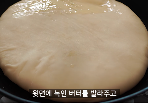 12. 아랫면이 익는 사이 윗면에도 녹인 버터를 골고루 발라줍니다.