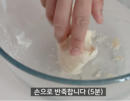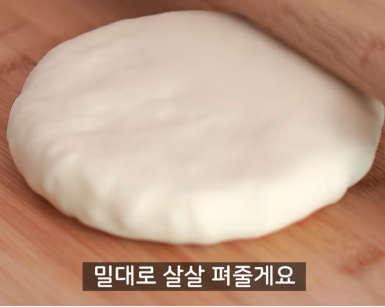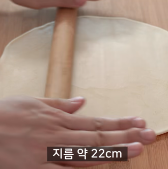 10. 반죽이 터지지 않게 잘 여며준 뒤 뒤집어서 밀대로 살살 펴줍니다.