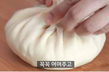 9. 이제는 남은 가장자리를 큰 만두를 빚듯이 빙 둘러가며 여며줍니다.
