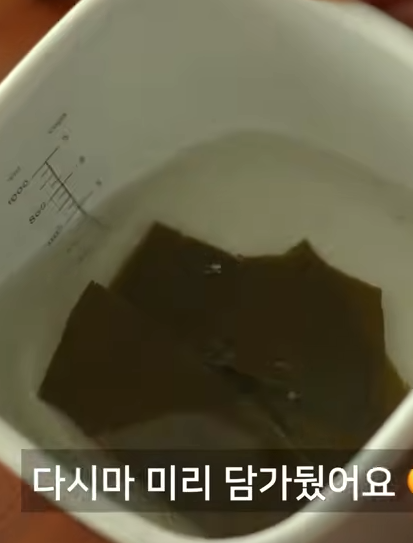 상온의 물에 다시마 미리 담가뒀어요. 다시마 물 1컵, 200ml
