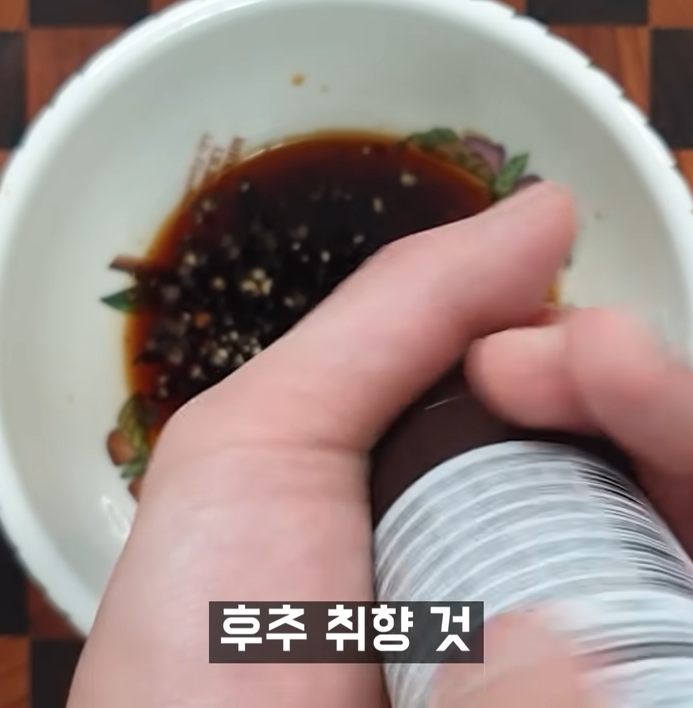 진간장 3스푼, 식초 1스푼, 맛술 2스푼, 굴소스 1스푼, 후추, 설탕 1스푼을 섞어 양념을 만들어주세요.