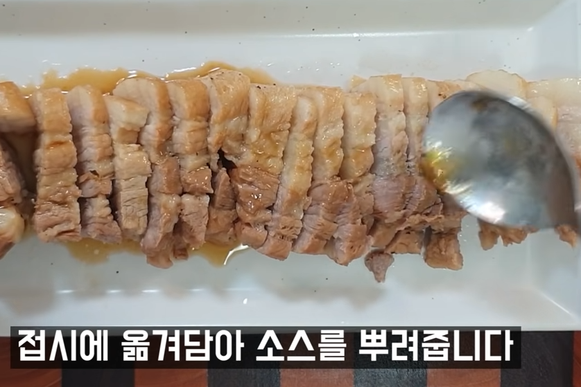 조리가 끝나면 돼지고기를 꺼내어 적절한 크기로 썰어주세요.