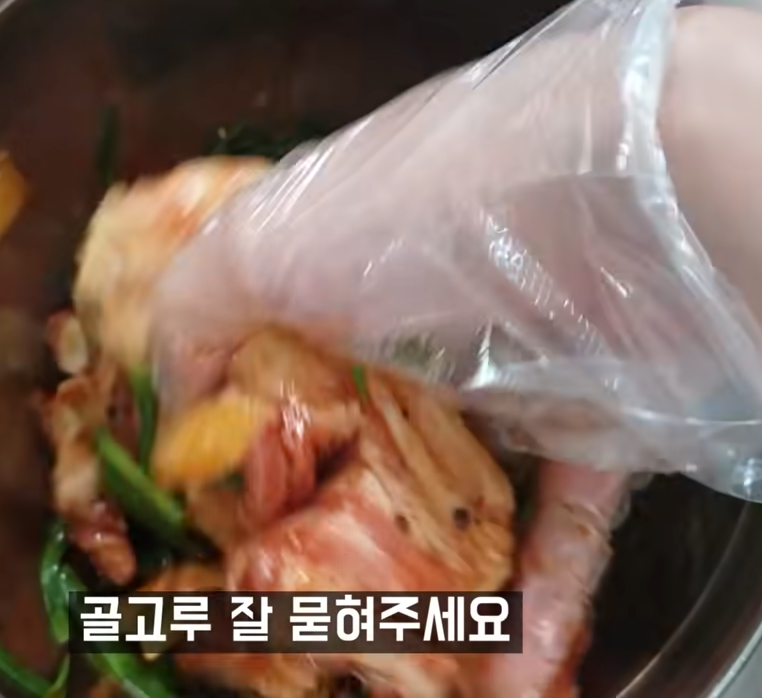 소스가 고기 사이사이로 잘 스며들게 해주고, 30분 동안 재워 양념이 고기에 잘 스며들도록 합니다.
